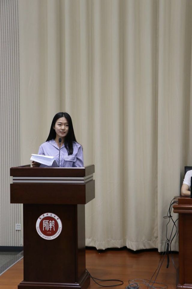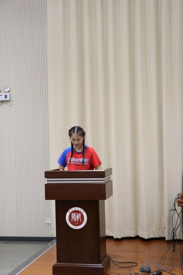 新生代表蒋雅冰同学紧随学姐的脚步,代表17级同学表态,向老师们和学长学姐们表达了自己努力学习的信心和决心。