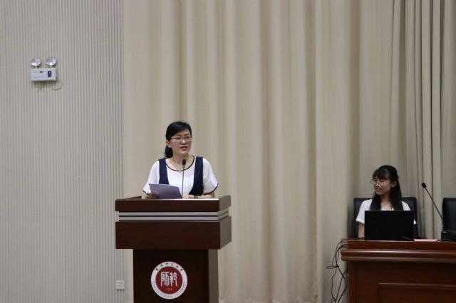 接着,张宝菊教授上台致辞。不仅向同学们介绍了学院的基本情况和学科情况,并且从多方面列举刚刚踏入大学的同学可能出现的问题,激励同学们在以后的大学生活中,心怀远大,脚踏实地,勤奋务实,修养品德,为自己的人生再添美好的一笔。