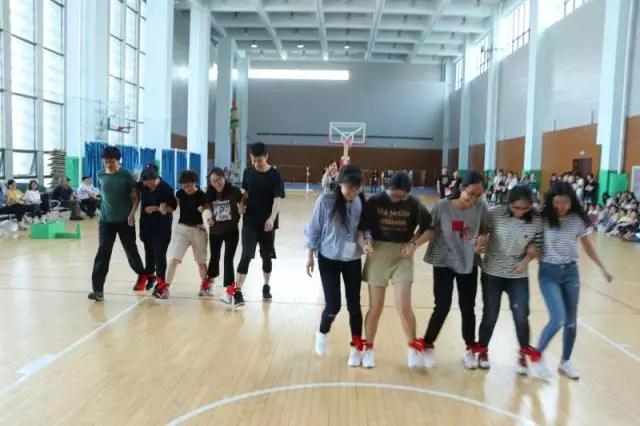 接下来一组比赛是电通三项,张院长夹着乒乓球在指压板上健步如飞,张珵老师抱起队友一路狂奔,刘明成老师跃然指压板上,石明珠老师迅速穿针引线,同学们激烈的追赶,老师同学们开心的大笑,欢乐的气氛洋溢在体育馆内!