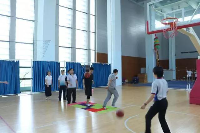 接着是指压板投篮比赛。六个人一组站在小小的指压板上,坚持不出圈五秒,脚底的痛感并不影响投篮的精确度,竞争十分激烈。
