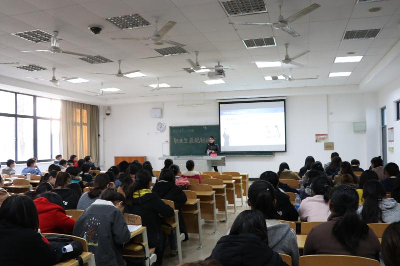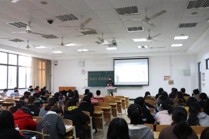 为了能够更好地帮助同学们树立正确的人生观、学习观、成才观,确立正确的奋斗目标,提高同学们的创业、择业、就业能力,我院于2017年11月16日下午3点,在劝C106举办了职业导航讲座,有幸邀请到了蔡肖肖老师作为主讲人。