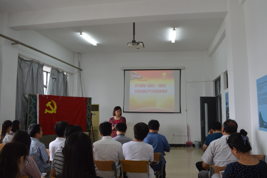 封老师带领全体党员认真研读《准则》和《条例》全文。新修订的《准则》和《条例》,集中全党智慧、凝聚思想共识、吸取历史经验、尊重前人智慧,体现了继承与创新的统一;遵循正确方向、把握有限目标,体现了学习贯彻习近平总书记系列重要讲话精神的理论成果,体现了党的十八大以来全面从严治党的实践要求。